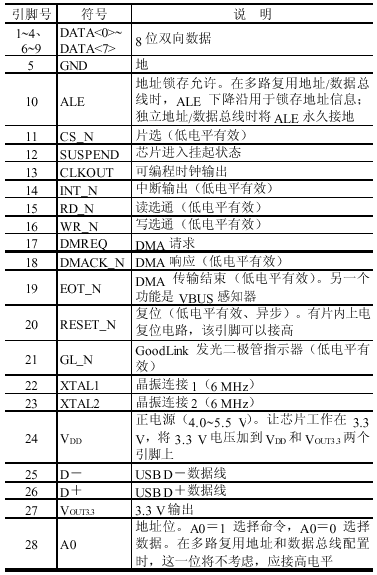 表1   PDIUSBD12引脚说明